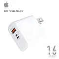 Product details of IPHONE 16 PRO MAX 50W POWER ADAPTER WITH 3 PORTS ( USB-A USB-C OR LIGHTNING )